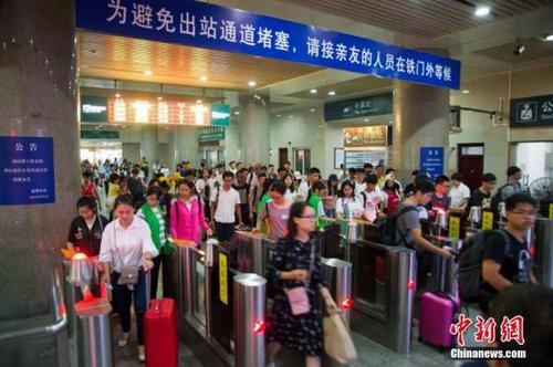 资料图:10月7日,“十一”黄金周长假进入尾声,外出游玩或探亲的旅客开始陆续返程。 中新社记者 李南轩 摄