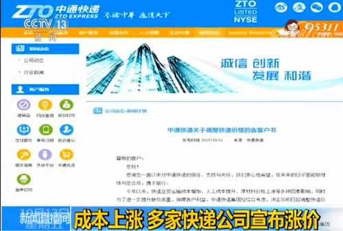 央视网消息:继中通、韵达宣布涨价后,12日有消息称圆通快递也将涨价,不过随后圆通公司相关负责人就否认了消息。年底快递旺季即将到来,快递业涨价成为人们的关注热点,那么,快递业涨价背后的原因究竟是什么?
