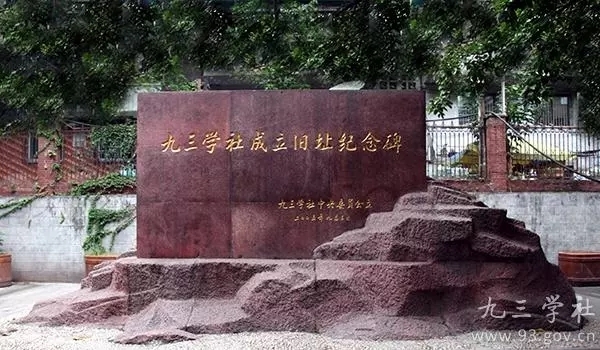 九三学社成立大会旧址,位于现在的重庆市新华路。不过由于时间久远,这栋建筑已经拆除,建起了德艺大厦。2002年,九三学社八大期间,九三学社中央主席韩启德提出了在重庆建造九三学社成立纪念载体的设想。由于原址已经拆除,综合各方意见后,终于在2005年九三学社成立60周年前夕,于距离青年大厦40米的人民广场,建造了“九三学社成立旧址纪念碑”。