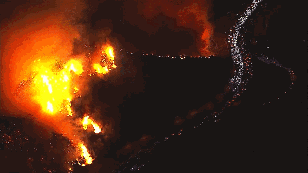 在强劲风力、低湿度以及干枯植被助力下,这次加州大火火势凶猛,数以万计民众紧急撤离,数以百计建筑物烧毁,当地多条重要高速公路部分路段关闭,盖蒂中心等著名地标遭到威胁。