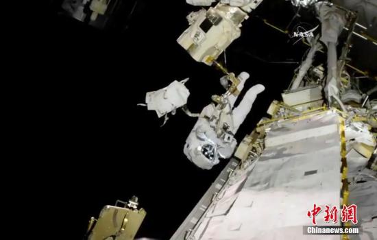 资料图:宇航员在国际空间站外执行任务。