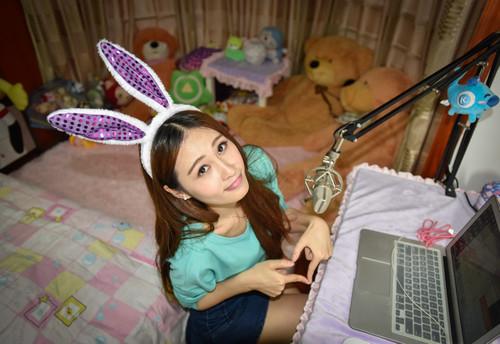 资料图片:网络主播燕子在自己的房间内上线直播(2015年4月28日摄)。新华社记者 刘大伟 摄