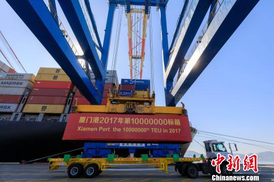 中新网厦门12月20日电 (陈悦 赖艺玲)20日上午,厦门港今年集装箱吞吐量正式突破千万大关,这在厦门港历史上还是首次。