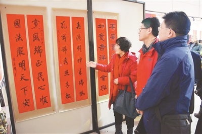 此次春联展共展出了192位书法家和书法爱好者创作的近300副春联作品。展览现场,大红春联喜气十足,充满了浓浓的年味儿。活动中,各位书画家还现场挥毫泼墨,为大家传递温暖,送去节日的祝福。刘跃发 摄影报道