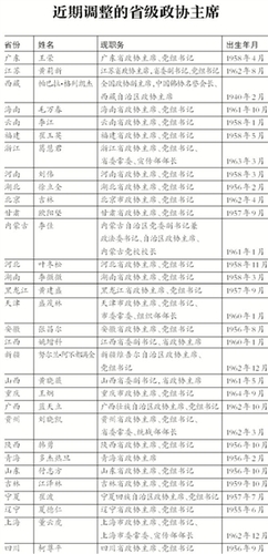 记者注意到,这23人中,有6人都是由省委副书记转任省政协主席。