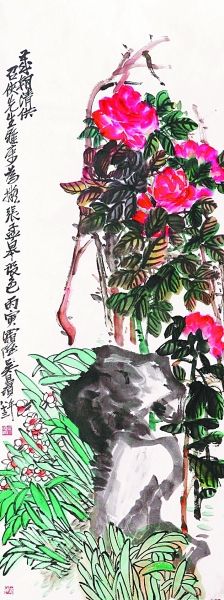 明清时期,“岁朝清供图”也成为文人钟爱的题材,明代的陈洪绶,清初的八大山人,扬州八怪中的李鳝,清末海派名家赵之谦、任伯年、吴昌硕等都有此类作品传世。对于这一现象,美学家陈健毛讲的最为透彻:“岁朝图”的流行可以看作文人画世俗化的缩影,其中很多作品虽表现文人擅长的梅兰竹菊,但其意义往往脱离了传统的品格气节象征,而被赋予平安如意、长寿吉祥等寓意,以迎合市场需求。吴昌硕作于83岁的一幅《岁朝清供图》,所画牡丹、水仙、石头皆为岁朝图中常见之物,然其以书入画,以写代工,牡丹的茎干、石头的轮廓皆显示出其老到的书法功底。至于设色,学的乃是清嘉道年间花卉名家张孟皋,牡丹艳而不俗,水仙雅而不孤。虽然只有两种花卉,但整幅画构图繁密,生机勃勃,与宫廷岁朝图的富贵细腻又大不一样。