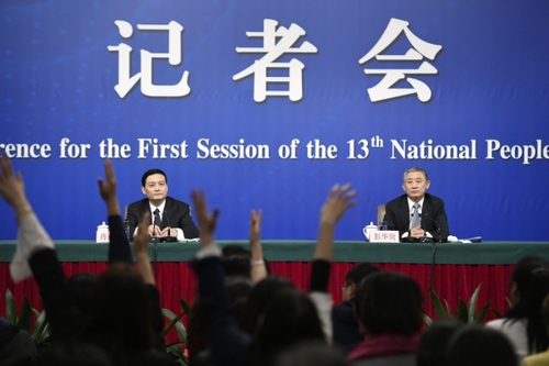 3月10日,十三届全国人大一次会议新闻中心举行记者会,邀请国务院国资委主任肖亚庆、副秘书长兼新闻发言人彭华岗就“国有企业改革发展”相关问题回答中外记者提问。