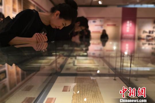 民众在甘肃省博物馆观赏展出的文物。 刘玉桃 摄