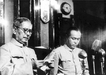 一九四九年,陈嘉庚(左)在新政协筹备会上讲话
