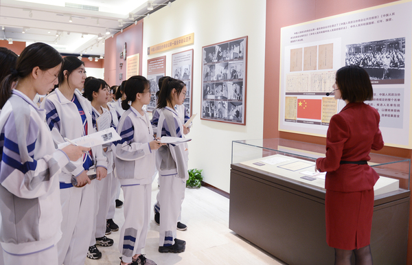 当日,正值中国政协文史馆“大道同行———‘从五一口号’到协商建国重要历史回顾展”开展期间,通过展出的珍贵图片和实物,八一学校师生详细了解了70年前各民主党派、无党派民主人士响应中共中央“五一口号”,冲破重重阻挠奔赴解放区、筹备新政协的波澜壮阔的历史,以及人民政协光辉历程,由此开启了此次模拟政协活动的第一课。