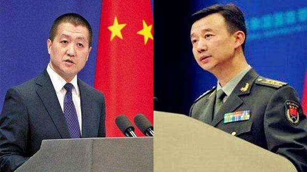 中国外交部发言人陆慷(左)和国防部发言人吴谦(右)
