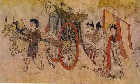 南北朝到唐朝的壁画中,这类的牛车非常多!