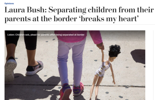 据《华盛顿邮报》报道,共和党人、前总统小布什的夫人劳拉·布什在的一篇评论文章中写道,她理解确保国家边界安全的需求,但当前的情况令她想起了二战时期的日裔拘禁营。