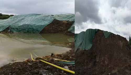 图1含铅废渣堆场集水严重、防渗膜破裂