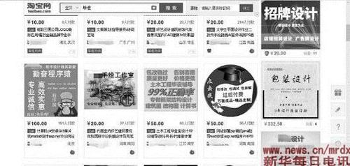 有很多专门的网站,提供毕业设计的代做服务。孟繁看了其中几家,都是QQ联系,先交一半定金,然后等对方在约定时间内把东西写好发给他,再付尾款。不过他担心这种付款方式不安全,就去有第三方支付平台作为保障的淘宝搜了一下,发现提供相关服务的卖家也很多。