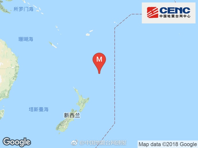 中新网7月8日电 中国地震台网正式测定:7月8日05时33分在新西兰克马德克群岛(南纬30.63度,西经178.01度)发生5.9级地震,震源深度20千米。
