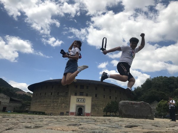 “参加活动之前,我们台湾团员都有分地点做功课,我刚好就负责介绍福建土楼。”江宇东说,他查了很多关于土楼的资料,但当看到土楼的那一刻还是被震撼到了。“仅从文字上真的很难体会如此宏大的建筑群,更可贵的是这里还生活着众多居民。特别是看到他们吃饭、喝茶、聊天,充满人烟味的感觉特别棒。”江宇东一边举着相机记录客家人生活的点点滴滴,一边告诉记者他也有一半的客家人血统。“在台湾苗栗地区居住着很多客家人,只是我们那里地势比较平坦,跟山区客家人的生活不尽相同。”
