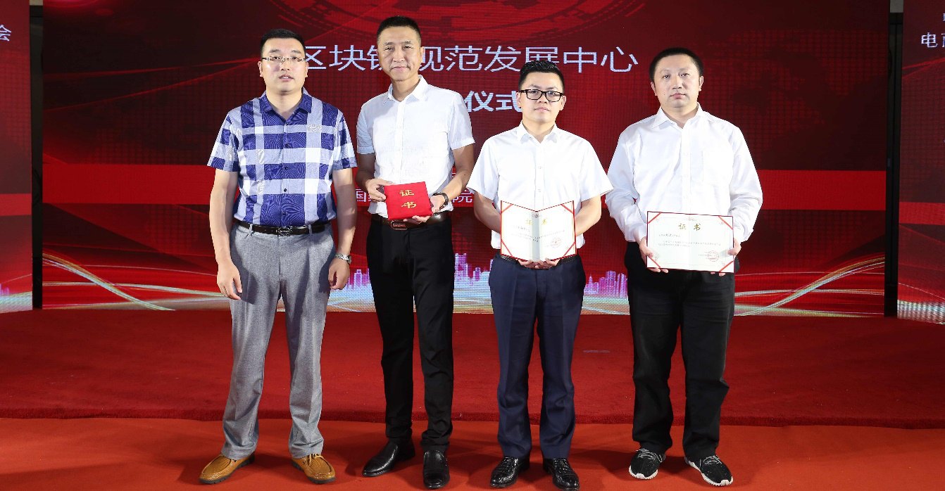 中国电子商务区块链规范发展中心执行主任李小勇(左二)接受任命
