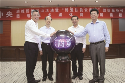 万鄂湘、李惠东、邵丹峰、肖远福共同为团结报多媒体阅报屏进驻毕节试验区揭幕;万鄂湘、李惠东、王世杰、张桂平共同启动“博爱扶贫云商城”微信服务号。