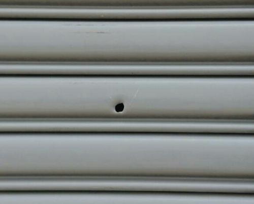 商店铁卷门上的弹孔。台湾《联合报》记者谢进盛/翻摄