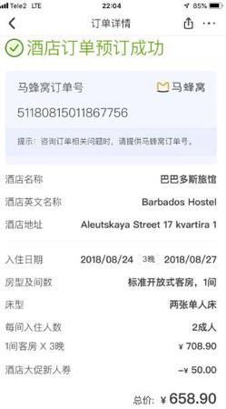 @二村不停 详细描述了事情经过:8月15日,自己在马蜂窝预订了海参崴巴巴多斯旅馆(Barbados Hostel)08月24日至08月27日共3个晚上的住宿。
