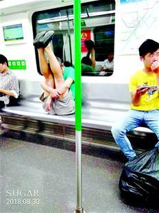楚天都市报讯 昨日上午,一位老人在地铁6号线座位上晨练,照片被同车乘客拍下后发到网上,引发不少网友热议。
