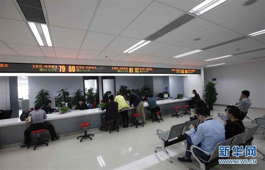这是设在上海张江高科技园区管理委员会大楼内的中国(上海)自由贸易试验区张江行政服务中心办事大厅一角(2015年3月31日摄)。 新华社记者 方喆 摄