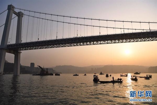 这是10月28日拍摄的重庆万州公交车坠江事故搜救现场。10月28日10时许,重庆万州区发生一起公交车与私家车碰撞后公交车坠江的道路交通事故。 事故发生后,武警、港航等部门10多艘专业船舶,立即赶到事故江面,进行搜救工作。 新华社记者 王全超 摄