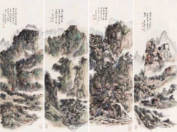 黄宾虹(1865-1955) 山水四绝 镜心 设色纸本 己丑(1949年)作 143.5×47 cm×4