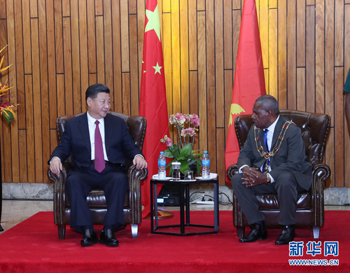 11月16日,国家主席习近平在莫尔兹比港会见巴布亚新几内亚总督达达埃。新华社记者 鞠鹏 摄