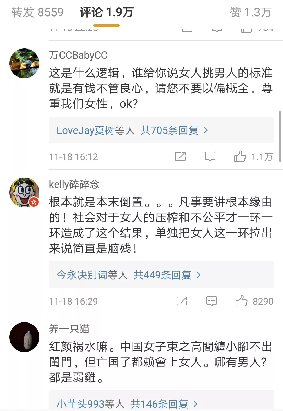 有网友认为,这就是现代版的“红颜祸水”甩锅论,“什么事都找弱者背锅,自己亡了国说红颜祸水,自己无能就教唆女子无才便是德”。