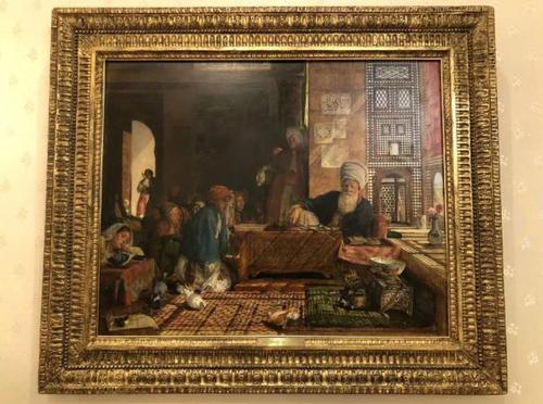 △《时政新闻眼》发现一幅19世纪英国东方主义画家约翰·弗雷德里克·刘易斯的油画《一家土耳其学校在开罗的近处》。(央视记者马亚阳拍摄)