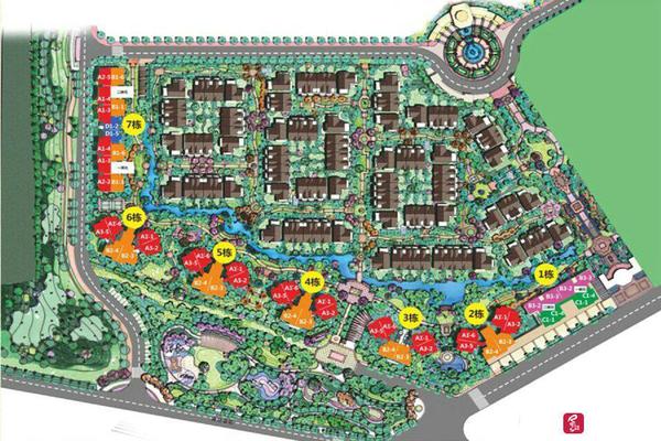 灰色为央墅,红黄色为星河里(效果图)