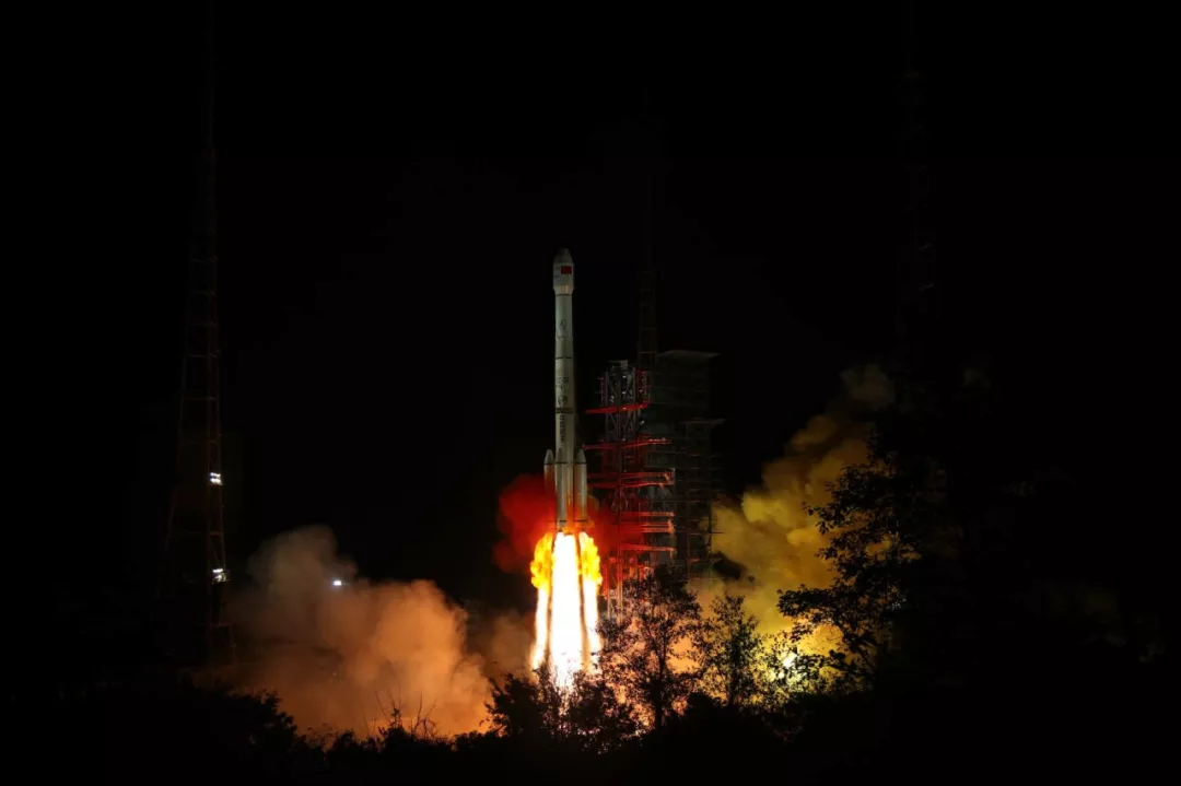 大家在发射现场的画面中能够看到承担此次任务的长征三号乙改进型运载火箭。