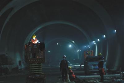 昨日,工人在京张高铁新八达岭隧道内施工。当天,新八达岭隧道顺利贯通。新京报记者 王贵彬 摄