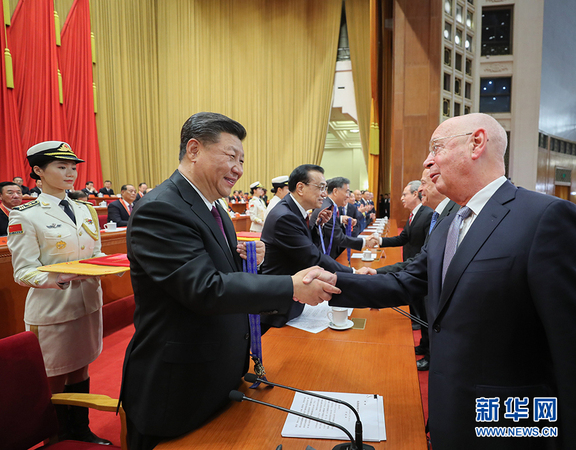 12月18日,庆祝改革开放40周年大会在北京人民大会堂隆重举行。中共中央总书记、国家主席、中央军委主席习近平在大会上发表重要讲话。这是习近平等为获得中国改革友谊奖章人员代表颁奖。