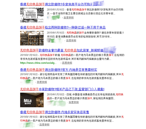 2019年1月中旬,无印良品饼干被曝致癌,引发媒体讨论。(图片来源:网络截图)