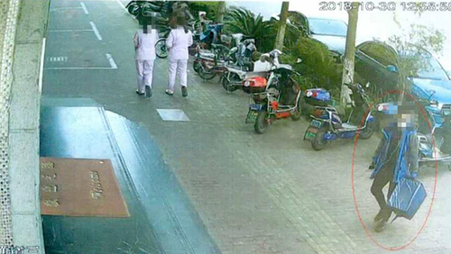 监控拍下的外卖小哥作案过程截图。本文均为 上海青浦区检察院供图