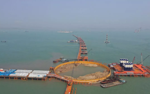 杨润来解释,“先在岸上预制若干管段,然后陆续浮运至海中间现浇隧道接口,一个接一个沉放于水底,利用水的压差将单个沉管相互连接,并正确定位在开挖好的水下基槽内,其后再辅以相关工程施工,使这些管段组合为隧道,成为连接水体两端陆上交通。”