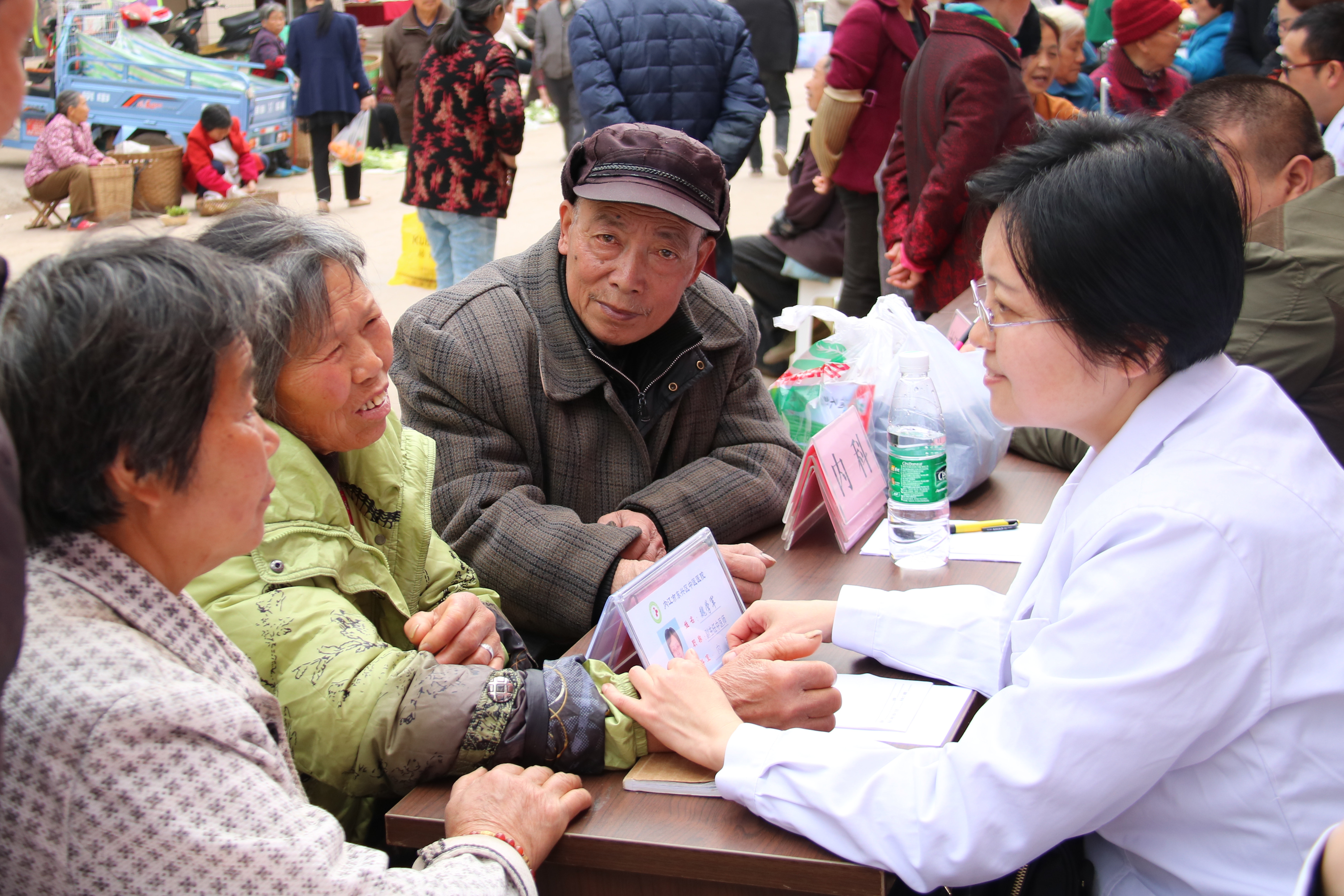 图为内江市政协送医疗下乡,医疗专家在和群众交流