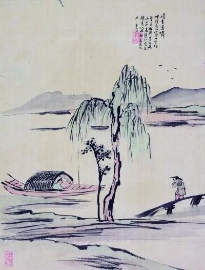 近代广东绘画,与京、沪画坛三足而立,提倡折衷中西的岭南画派以及提倡从传统中寻找改良国画之路的广东国画研究会,其画论及其作品为全国所瞩目。这种求变精神,是有其渊源的。此次展览展出的梁于渭《山水图册》,展现他迥异于传统的笔墨技法和形式。用绵长、疏简的线条勾勒山体,少皴,代之以平涂色彩,或者以高低起伏的线条勾勒山形,再施以粗放、干涩的皴擦和赋色渲染,令他的山水别具一格,为晚清广东山水画带来一股新风。在务求创新之外,广东文人还有坚守文人审美的传统。广州作为清代唯一通商口岸,生活其间的文人有大量机会接触西方美术,甚至有机会远赴海外美术馆参观。展览中展出的晚清李冠棻的《在山泉图》,以其在香港九龙的居所“在山泉”为题,展现的却是传统士大夫闲雅淡泊的志趣。