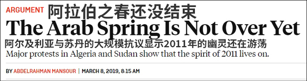 不少外媒在报道苏丹近期的持续抗议及政变时,均打出了“阿拉伯之春的延续”的主题。