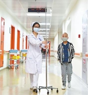 “我的孩子是不是没救了?”刚踏出病房,韩瑞娟就被情绪崩溃的另一位患者嘟嘟(化名)的妈妈围着。韩瑞娟顺手关了病房门,拍了拍她的肩膀,带她到走廊外开导。“这里每年有很多孩子出院,他们出去后考了大学、结婚生子,都健康快乐生活着。”韩瑞娟说,2018年儿科血液病区出入院患儿超过3000人,急淋患儿5年无病生存率达87%,5年内疾病不复发,再次复发的机会就很低了。