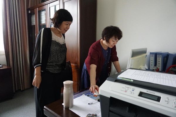 华中科技大学同济医学院附属同济医院计算机中心数据库和软件开发工程师李晓华(左一)深入信息科进行业务指导