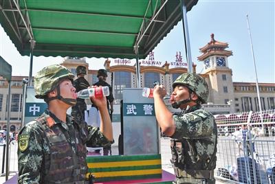 昨日13时,北京站站前广场南侧的武警执勤岗,刘兴望和他的战友站在一米多高的执勤台上,分别朝两个方向望去,整个广场的情况尽收眼底。今年24岁的刘兴望是武警北京市总队执勤第二支队十一中队一名老兵,已在北京站执勤站岗4年。