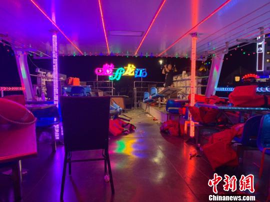 记者赶到现场看到,事故客船停靠在江边,客船共有两层,一层座椅下有明显血迹,二层座椅凌乱,事故造成客船船头左侧破损。