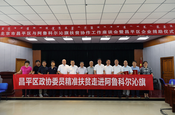 7月17日至19日,满怀着对内蒙古阿鲁科尔沁旗(以下简称“阿旗”)打赢脱贫攻坚战、如期脱贫摘帽、携手奔小康工作的坚定支持和对阿旗人民的深厚感情,昌平区政协党组副书记、副主席李永生,昌平区委统战部副部长、区工商联常务副主席靳红,昌平区政协经科委主任杨廷龙、提案委主任李志江,区残联党组书记、理事长陶建刚,昌平区工商联部分机关干部和昌平区工商联会员企业家刘郁、宋万东、王剑元、闫志军、金莉、邢宏宾、刘来民、于宪彭、罗向东等22名会员企业家或企业家代表一起驱车700多公里,来到昌平区对口帮扶的内蒙古阿旗进行扶贫。22家会员企业现场为阿旗22个贫困村捐款44万元,支持当地贫困村扶贫项目“爱心超市”建设。