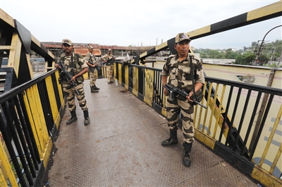 8月7日,印度士兵在克什米尔地区岗哨附近站岗。图/IC photo