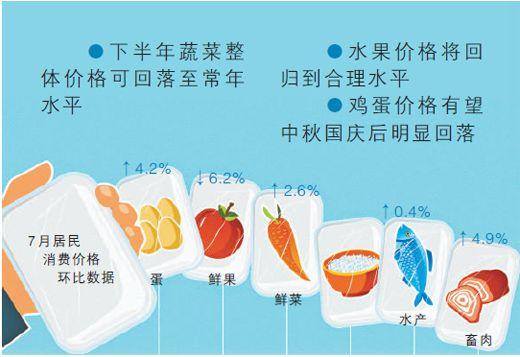 水果价格将回归合理。自7月以来,时令水果大量上市,水果价格逐渐回落。中国果品流通协会价格监测显示,7月23日2019产季新的黄冠梨上市,全国黄冠梨(单重250克以上)收购开秤均价为每公斤3.52元。此后价格高开低走,8月6日收购价格2.95元,下跌16.2%。