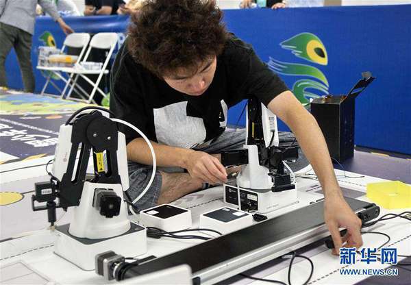 8月21日,参赛选手在比赛中。 世界机器人大赛冠军赛与北京2019世界机器人大会同期举行。世界机器人大赛被誉为机器人界的“奥运会”,今年共设BCI脑控机器人大赛、共融机器人挑战赛、机器人工业设计大赛、青少年机器人设计大赛四大类赛事。大赛已在全球举办了多场选拔赛,本次冠军赛有中国和来自俄罗斯、日本、韩国、美国、新加坡、墨西哥、菲律宾等10余个国家和地区的1000余支队伍参赛。 新华社记者李欣摄